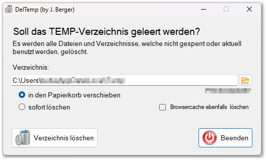 Löscht nicht benötigte Files aus dem TEMP-Verzeichnis.